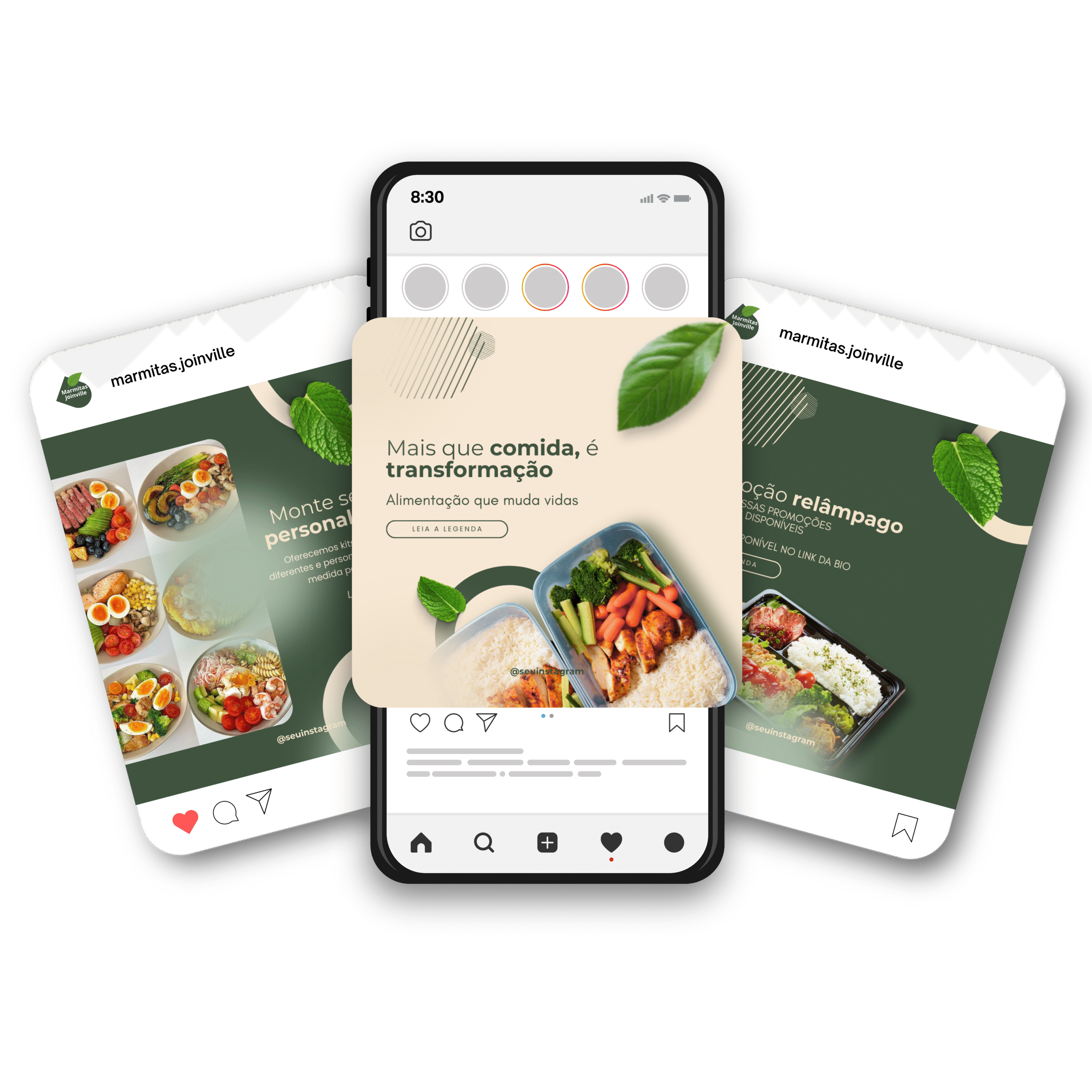 Aumente seus pedidos de marmitas com posts prontos que chamam atenção e geram confiança.